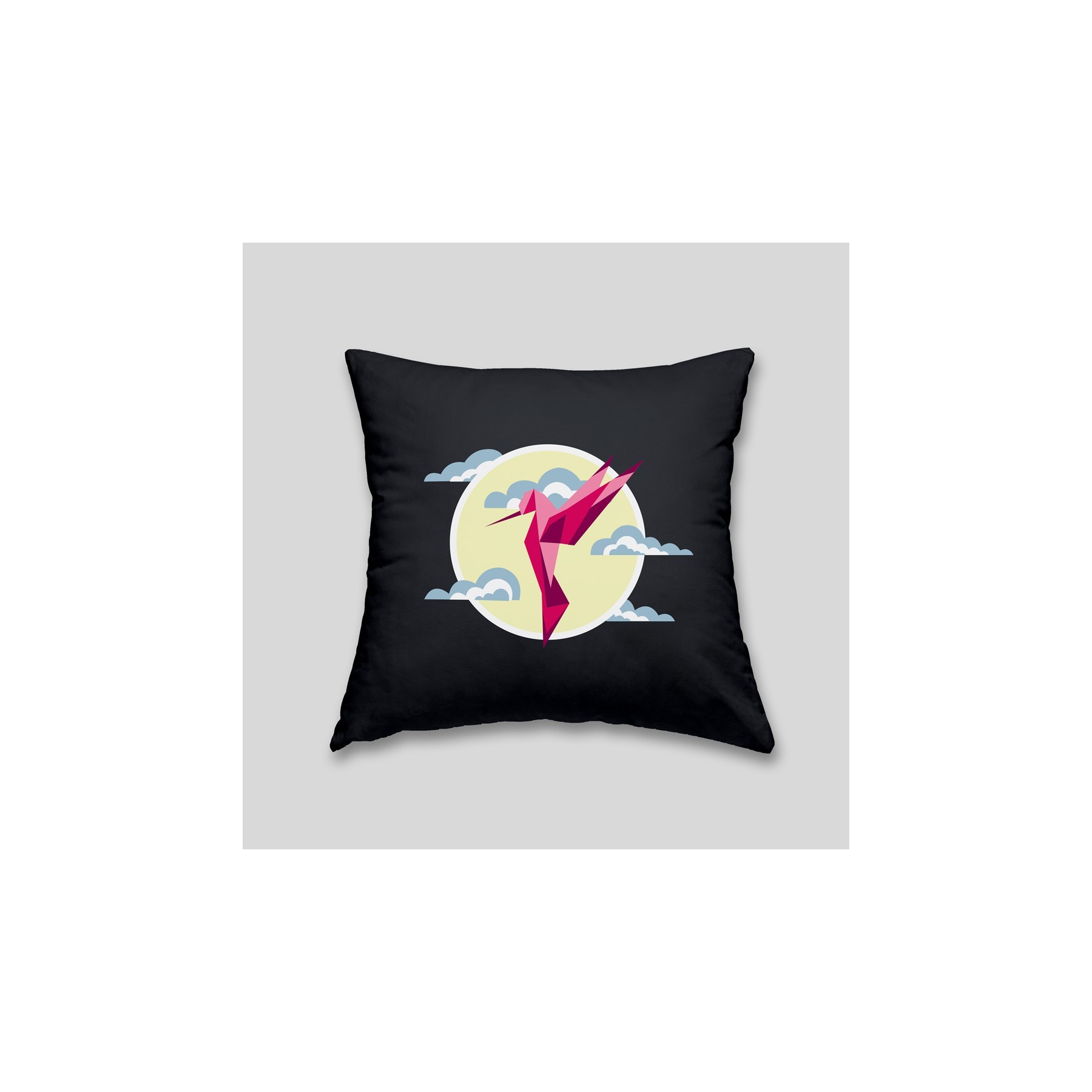 The hummingbird cushion will add a graphic and colorful touch to your sofa, armchair or bed. Create a modern and zen atmosphere that inspires relaxation. Cover 100% cotton, machine washable at 60° / Filling 100% hypoallergenic polyester.